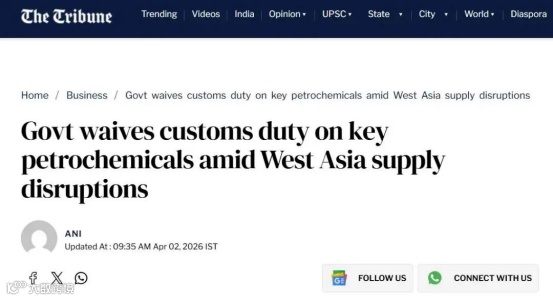 为应对全球化工供应链紧张,印度政府宣布自4月2日至6月30日对部分化学品实施零关税政策。此举是继扩大俄罗斯石油进口后,保障国内工业原料供应的关键措施。