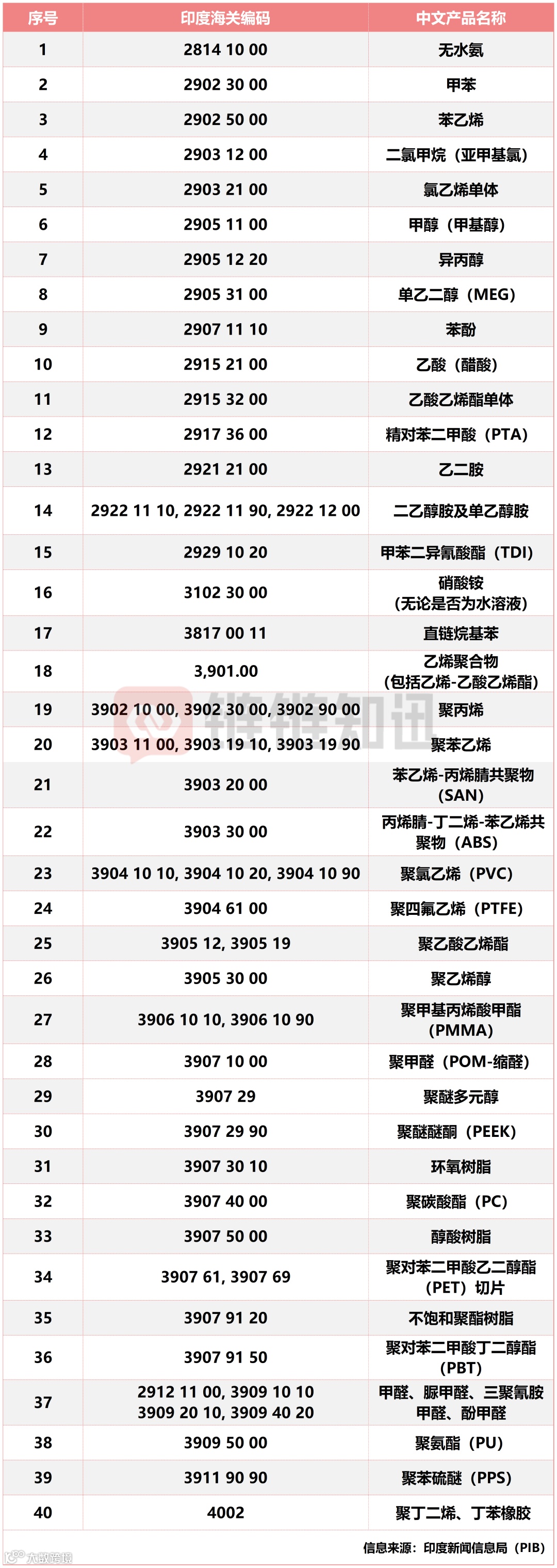 本次豁免覆盖无水氨、甲醇等基础化学品,聚乙烯、PVC、环氧树脂等塑料树脂,以及ABS、PC等聚合物和PTA、乙二醇等纺织原料。政策旨在稳定工业原料供应、缓解制造业成本压力,惠及塑料、包装、纺织、制药、汽车、电子等多个行业。