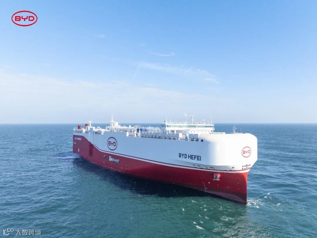 我国正加快向全球高技术产品提供者转型。图为2025年1月7日,比亚迪命名为"BYD HEFEI"的第三艘滚装船启航。比亚迪供图