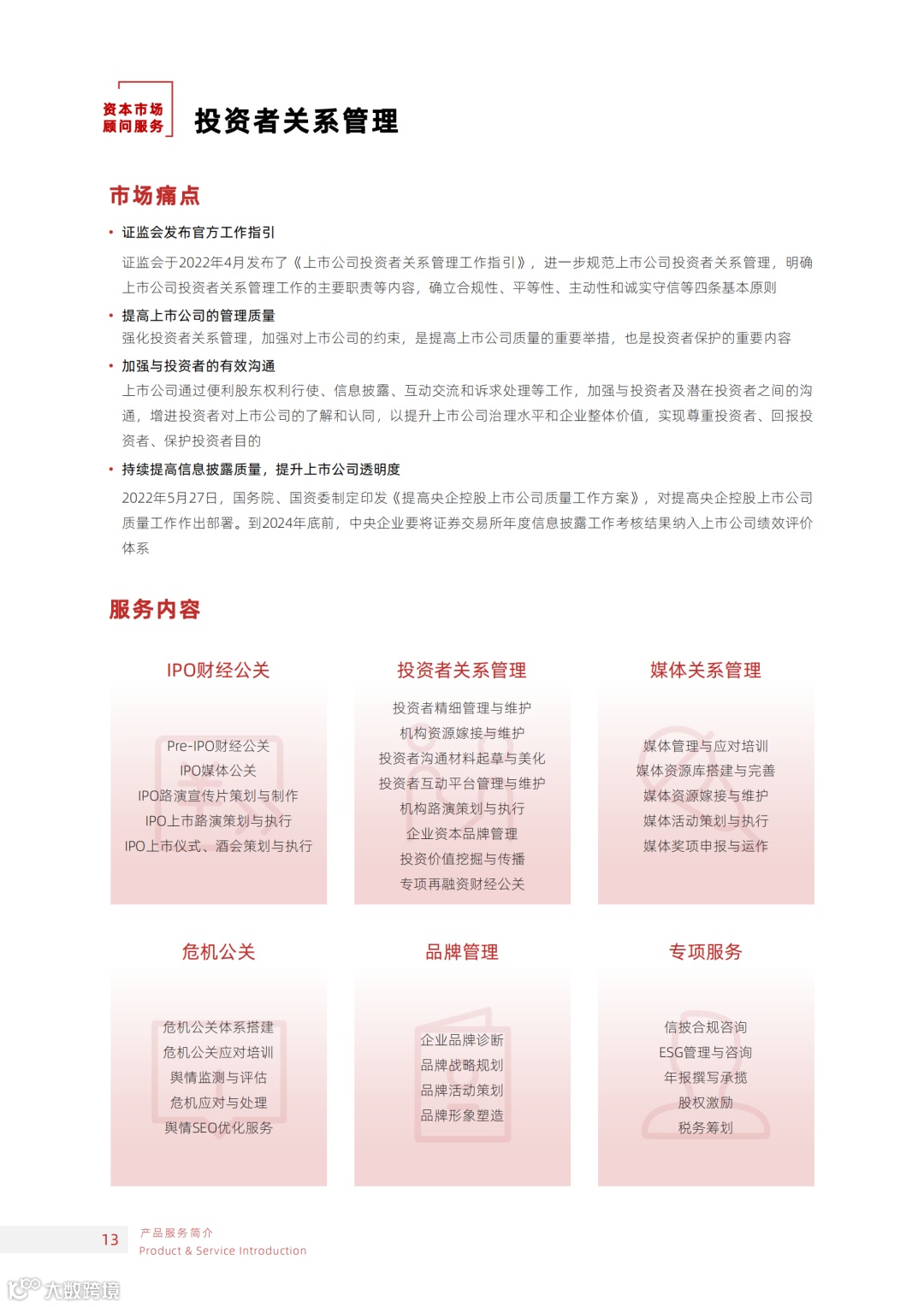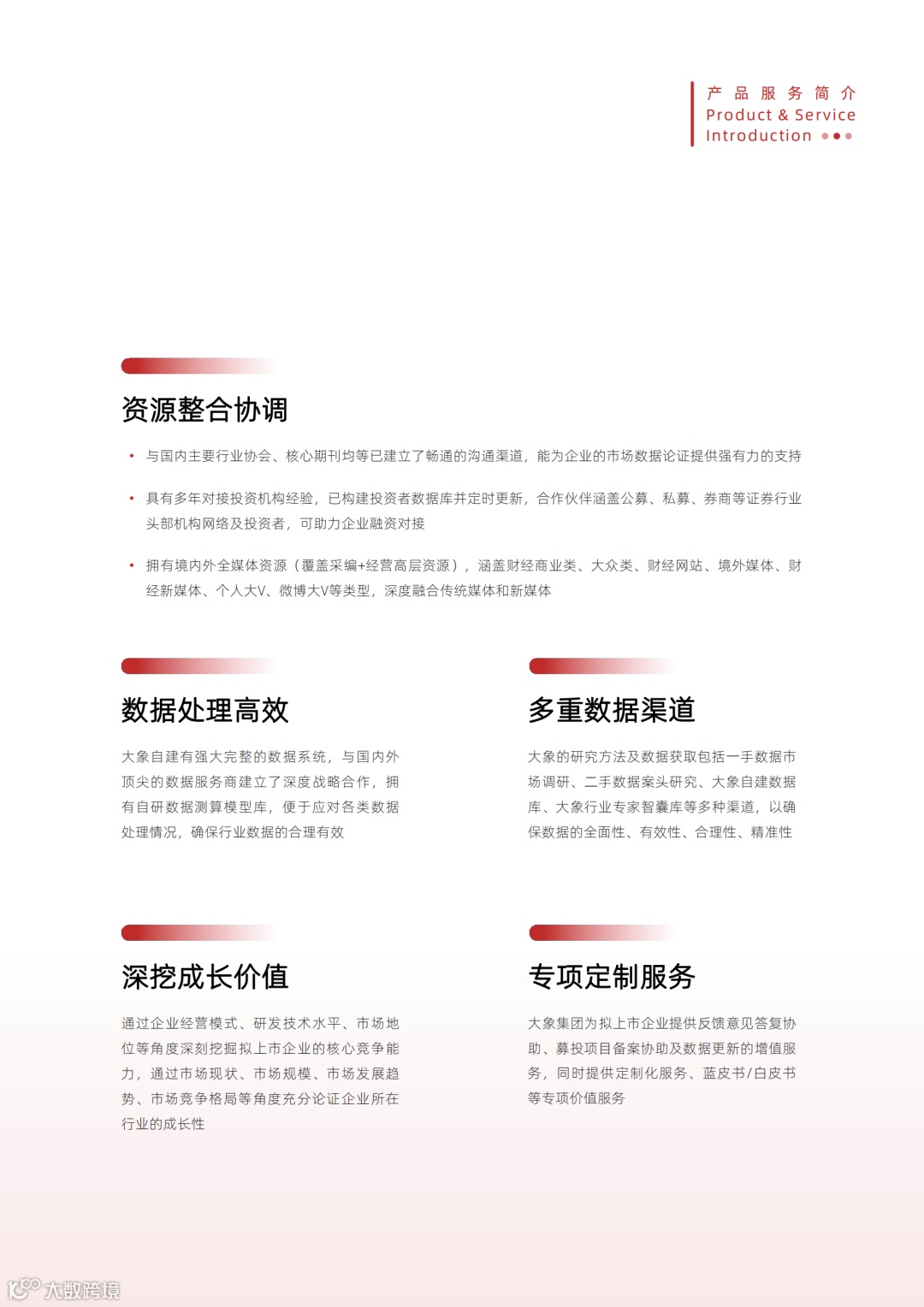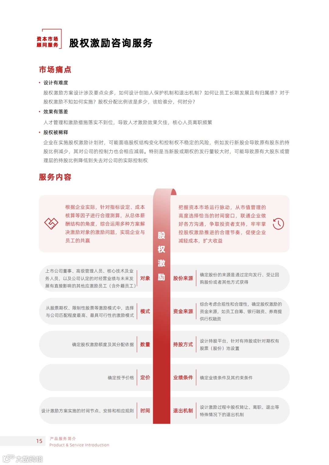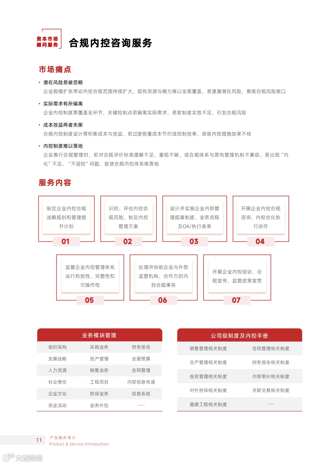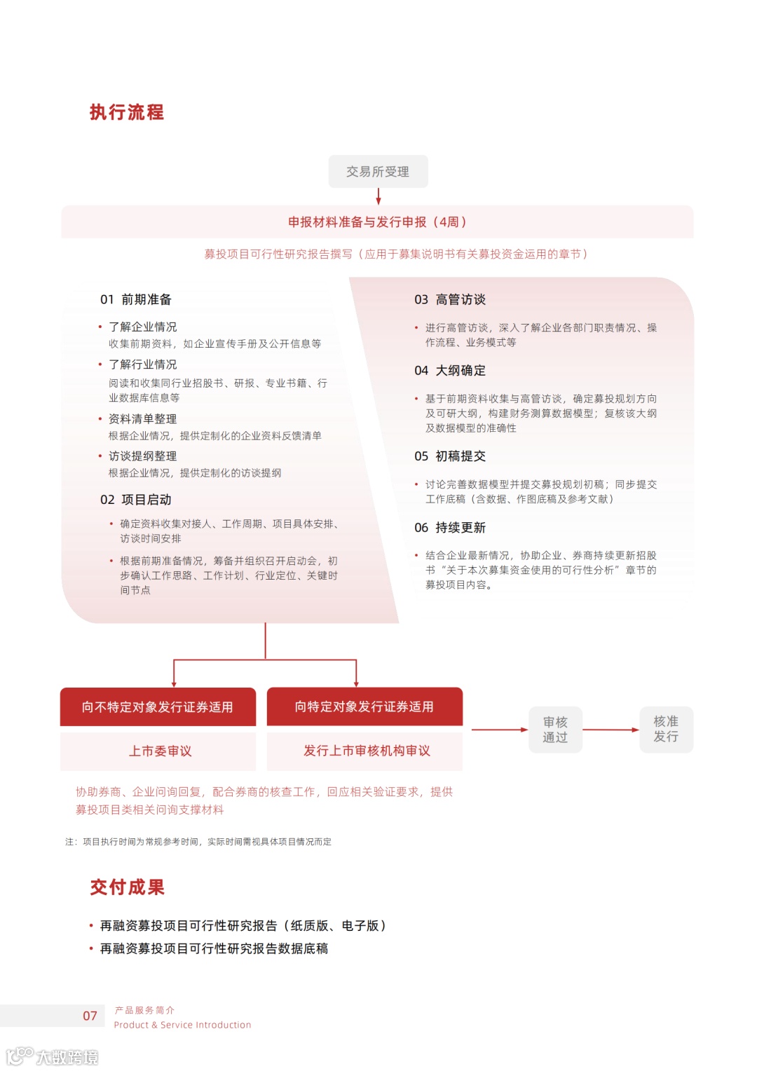 公司为拟上市及上市企业提供IPO咨询、再融资及并购服务,涵盖A股IPO行业研究、募投项目可行性分析、港股IPO顾问及商业尽调等核心业务。