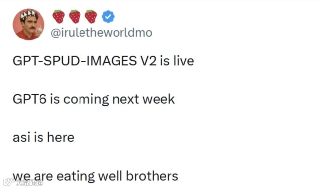 “GPT-6来了”的消息引发科技圈热议。4月初,X平台科技博主爆料称,OpenAI内部代号“Spud”(土豆)的GPT-6已完成预训练,预计4月14日发布。