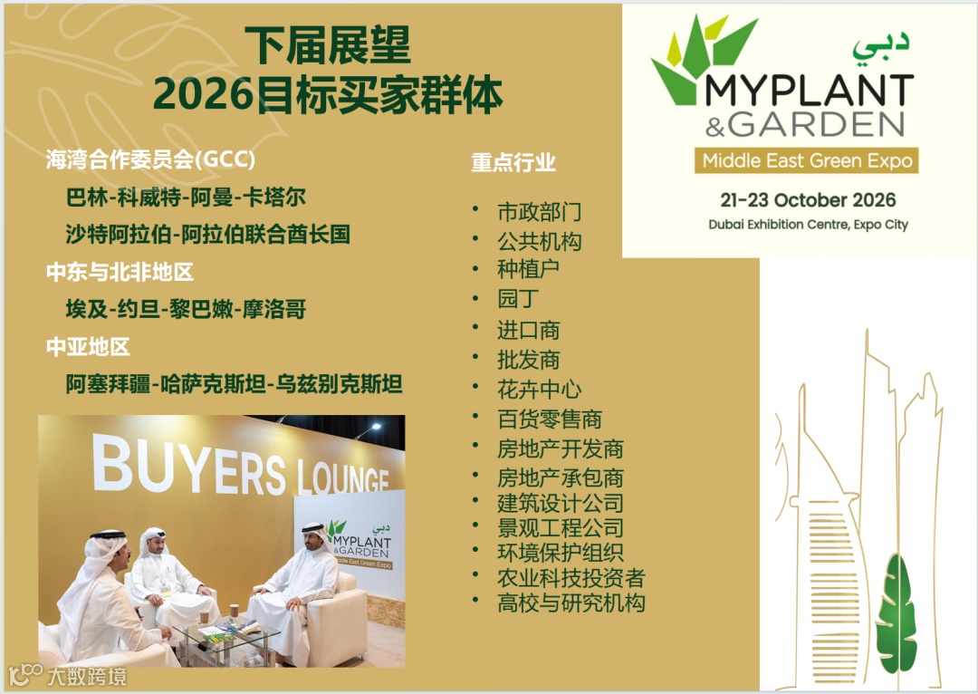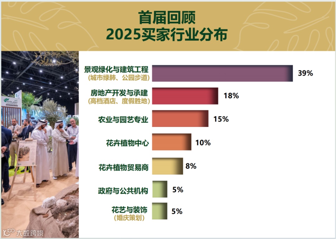 首届展会吸引13国100家展商及49个VIP买家团,精准覆盖市政绿化、商业地产、景观工程等核心采购渠道。展会紧扣海湾地区绿色发展倡议,为花卉种植、温室技术及景观设计企业搭建中东贸易桥梁。