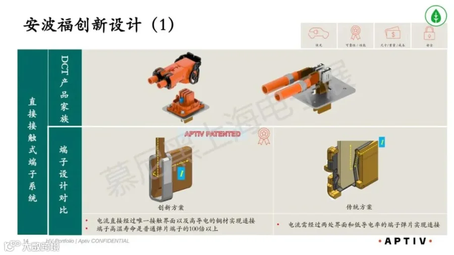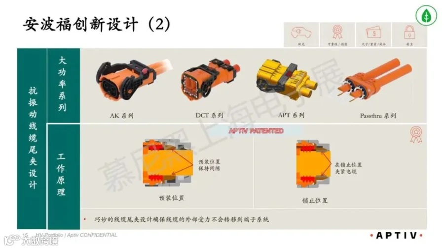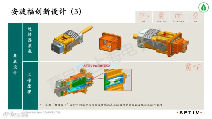 :安波福直接接触端子、抗振尾夹、集成设计、分线器设计形成专利壁垒。