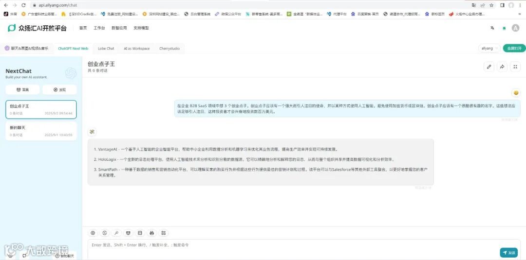 2)NextChat: https://app.allyang.cn NextChat(又名ChatGPT-Next-Web)是一款开源的跨平台AI聊天应用,支持私有化部署,兼容多种主流大语言模型(如GPT-3/4/5、Gemini Pro、Claude等),并提供丰富的交互功能。