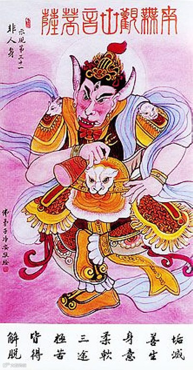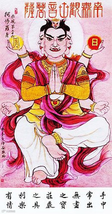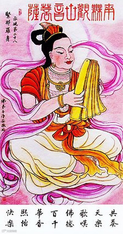 大乘佛教认为观音菩萨为了广化众生经常要示现各种现象,称为“普门示现”一共有三十三种化身。我国古代人民根据此一说法依照自己的想象,绘制了观音的三十三种化身像。
