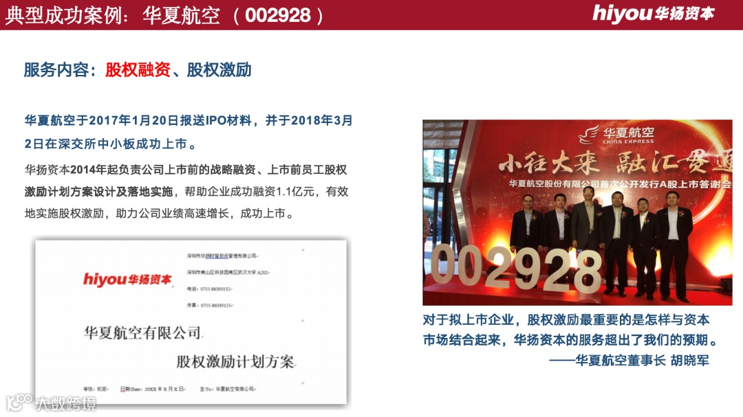 华扬资本团队长期为我们提供跟踪服务,从新三板挂牌、股权激励到股权融资,是我们公司走向资本市场的可靠专家团队! —— 南王科技董事长 陈凯声
