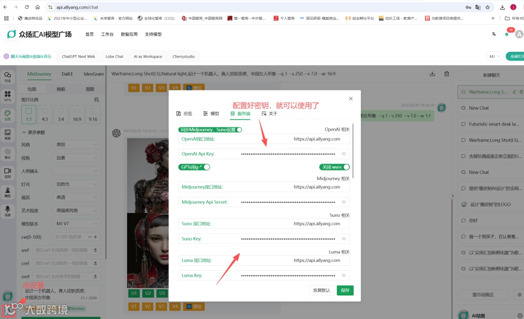 众扬汇AI开放平台的已经配置以下数智应用工具,开放平台的API密钥适合所有数智应用软件,详细链接地址如下: