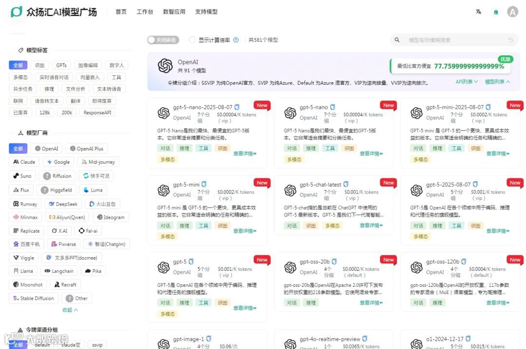 6)支持超多模型、各种渠道,价格 & 质量都有保证