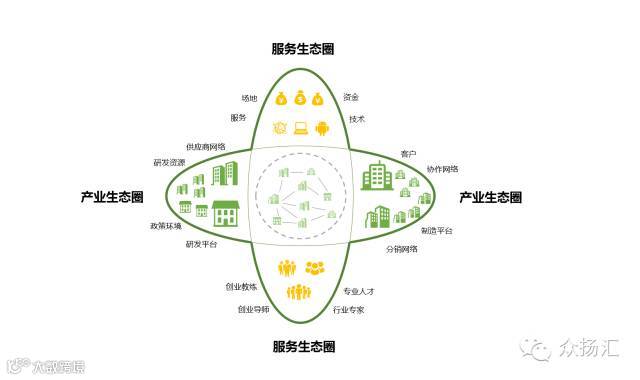 大家都知道,从促进创业的成功率看,一个项目能不能成功,并不是有了完善的创业服务就成了,一个项目是否成功,其核心是这个项目必须落在一个有效的产业生态圈中。有些颠覆性的商业模式,需要打造一个全新的生态圈,有些基于传统产业资源创业的项目,需要落在一个已有的生态圈中。没有产业生态圈思维,项目成功率是非常低的。所以,一个完整的创业体系,应该是双生态圈的:一个是创业服务生态圈,一个是产业生态圈,在产业生态圈中,可以为创业团队提供研发资源、制造支持、渠道通路、客户资源、供应网络等各类服务。产业资源的支持,将大大提高创业项目的成功率。