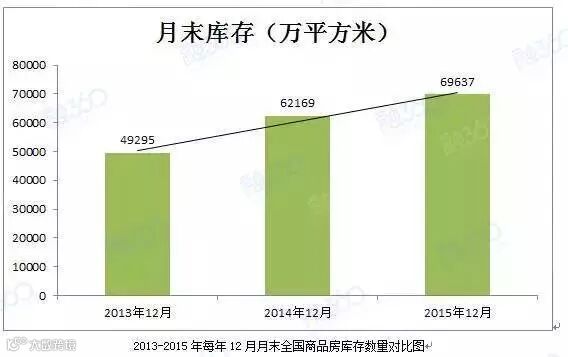 从2013年起全国商品房库存数量呈直线上升趋势,2014年的增长率为26%,2015年增长率为12%。把库存除以销量得出去化周期,2013年的去库存化周期为4.5个月,而到了2015年就增加到7个月了,说明在政策刺激后,楼市库存量仍然在增加。