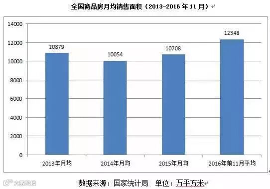 最后,放两张图,大家感受一下这一年的卖房成果吧。2016年前11月,全国商品房销售面积135829万平方米,同比增24.3%;总销售金额高达10.25万亿元,增长 37.5% ,据说已经超过了韩国和俄罗斯等一些国家的GDP总额。