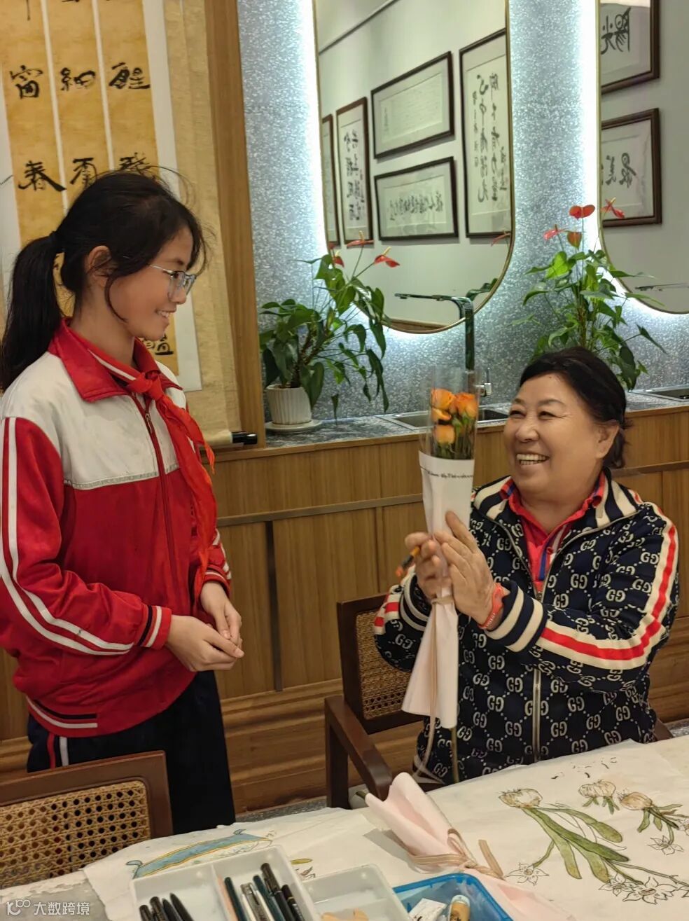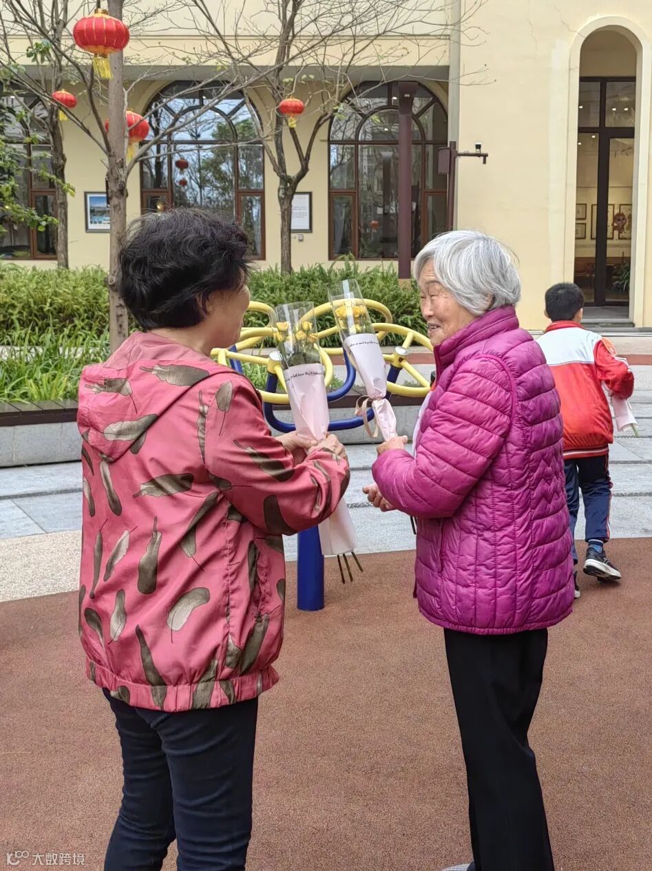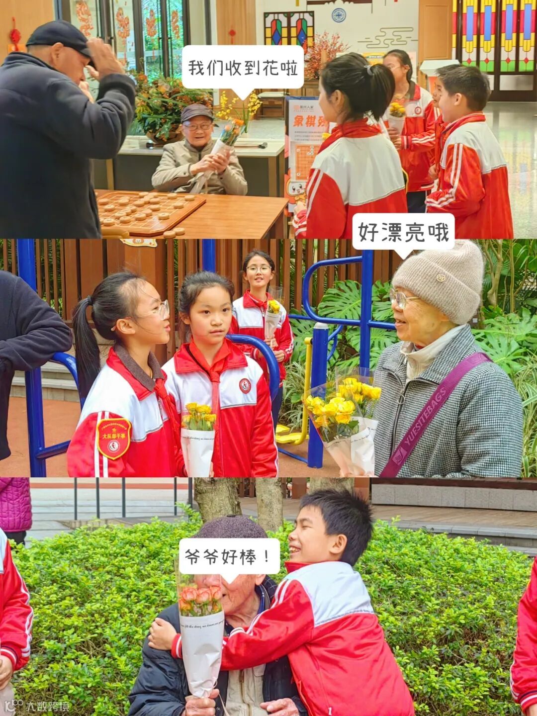 活动中,小学生们不仅为长者送上鲜花,还陪伴长者一起参与各项活动等,让养老社区充满了温馨和欢乐。