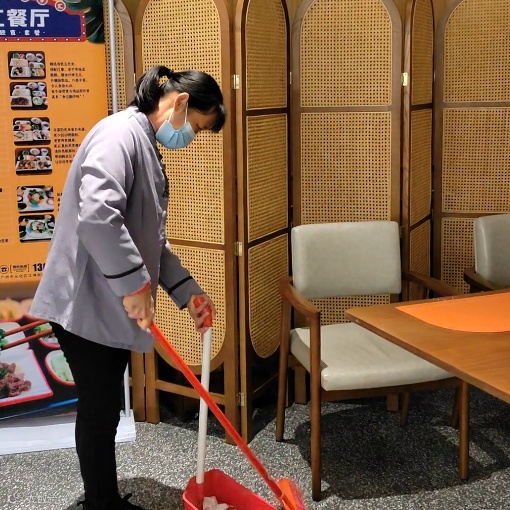 午后的园区,保洁阿姨仔细擦拭架空层的桌球台、麻将桌,连扶手缝隙的灰尘都不放过;