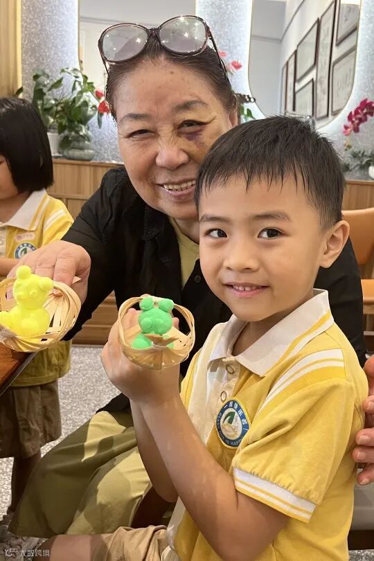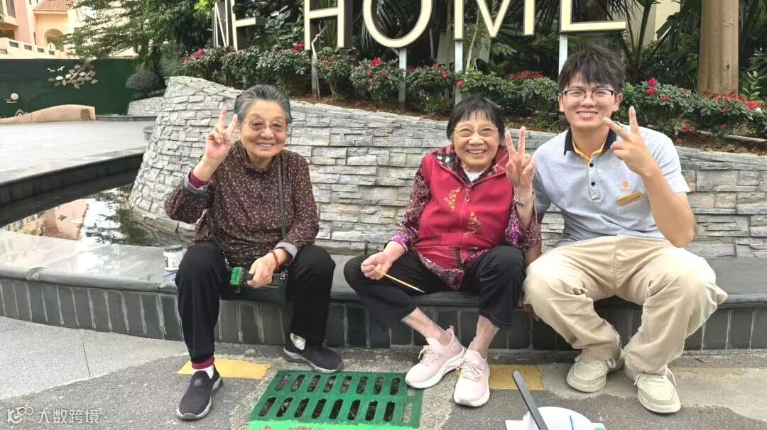 跟他们一起说话、散步、练毛笔、玩游戏,很开心我的付出最终能得到长辈们的喜爱与认可。