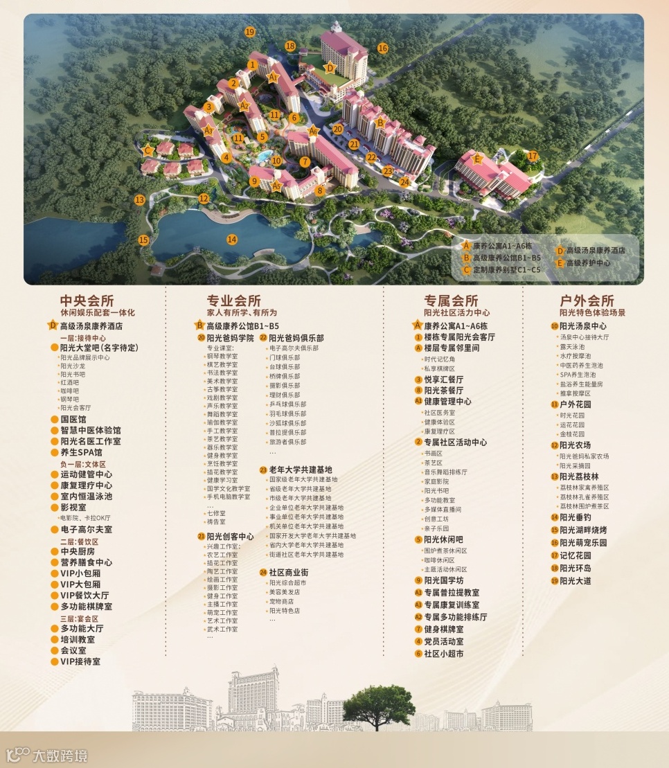 区别于传统养老社区,阳光人家面向全龄层客群,将汤泉养生+旅居康养+长居养老+护理养老相结合,带给客户高品质健康生活体验;并根据居民不同年龄阶段和健康状态,设有独立生活、协助生活、专业护理和记忆照护等全业态区,打造华南CCRC持续照护领军服务品牌。
