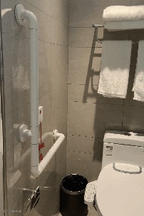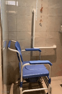 公共通道、楼梯旁一路都有扶手杆;坐便器旁的扶手,老人起身时一抓就稳;沐浴间的L型扶手更是“刚需”,洗澡时借力不打滑。