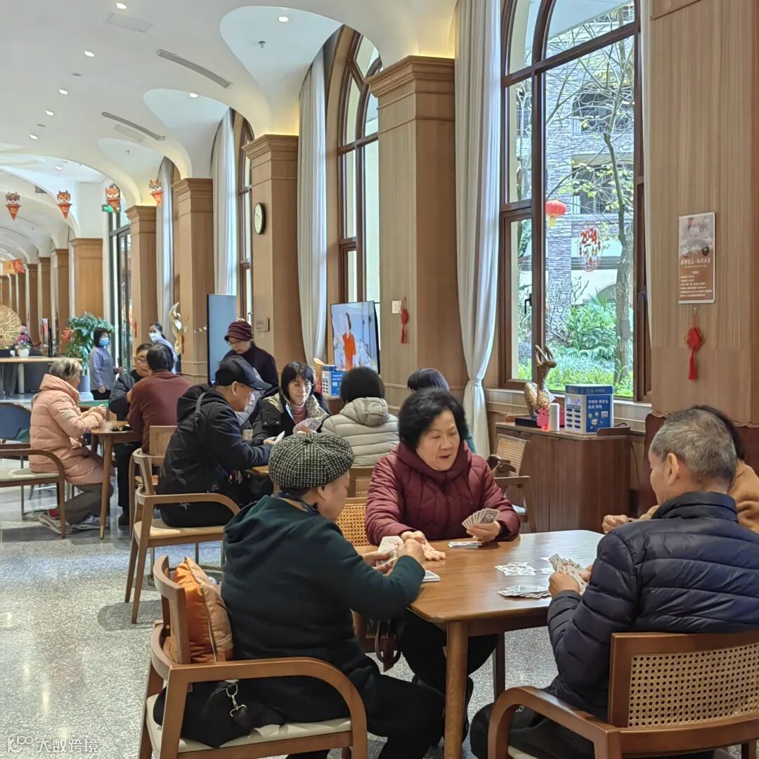 长者们自己结伴玩各种棋牌活动,社交活动对老年人的身心健康都有很大的益处