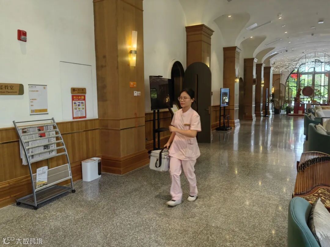 护理员通过紧急⼿机联系现场值守护⼠,告知