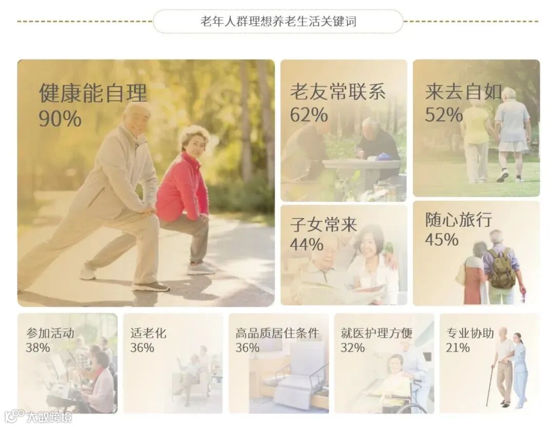 中国养老市场调查得知,越来越多的老年人开始追求“自我独立”,不愿与子女同住,但愿各自安好。