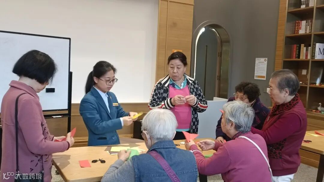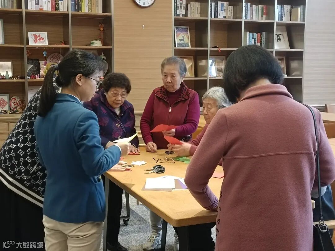 与长者们一起探讨剪纸方法,剪纸的式样以及颜色搭配的选择,帮助长者们更好地理解手工剪纸的制作及构思设计。
