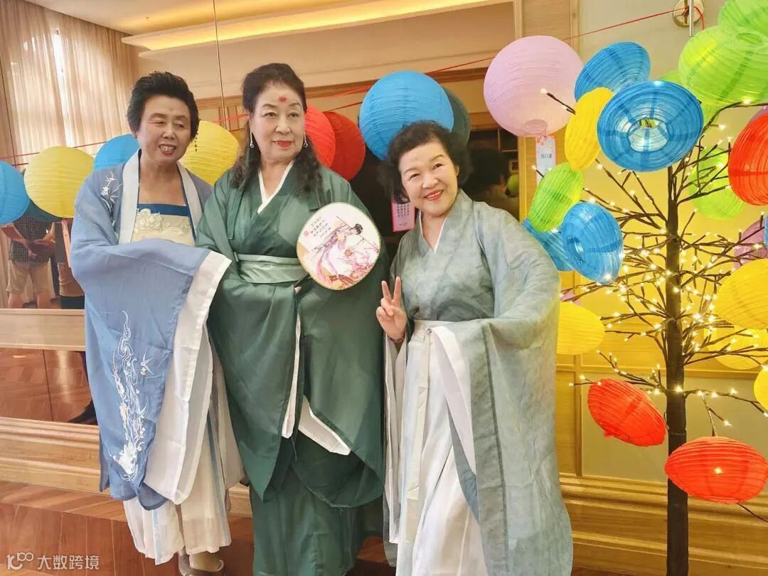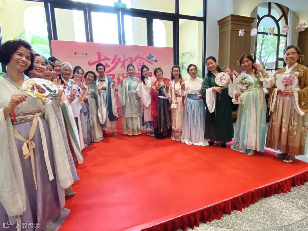 大家穿上汉服,仿佛穿越时空,呈现出一种古典与现代交织的美感。不仅让居民们欣赏到了汉服的韵味,也为社区增添了一道亮丽的风景线。
