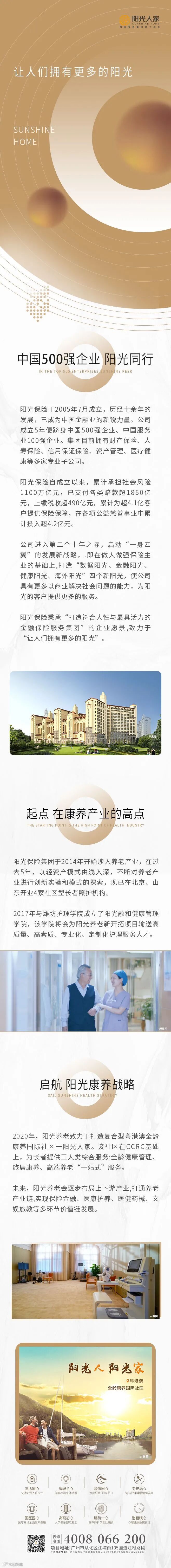 阳光人家广州康养社区,是阳光保险集团旗下成员。社区将汤泉养生+旅居康养+长居养老+护理养老相结合,以充满阳光特色的服务体系打造境养、医养、康养、护养、泉养、食养、居养、学养、农养、乐养等十重高品质享老生活,为全龄客户带来高品质健康生活体验。