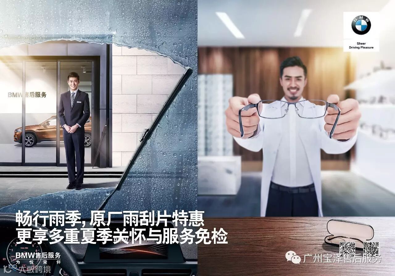 遇到大雨滂沱,雨刮片的良好运作就成为出行安全的重要保障,而随着雨刮片老化,刮雨效果也会相应下降,甚至划伤玻璃,造成视野不清。因此,雨季更要定期检查、更换雨刮片,让质量过硬的BMW原装雨刮片给你安心无忧的出行保障。活动期间,回店购买雨刮片保养套餐,即可获得200元超值优惠,你的出行安全,就是BMW关怀所在。