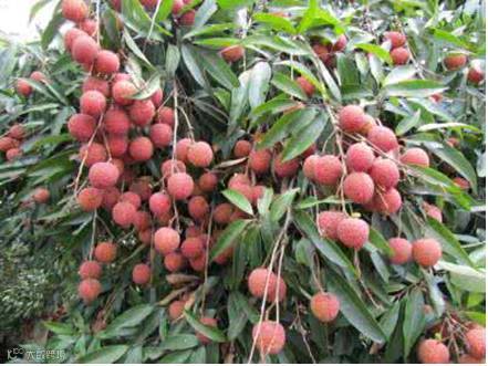 荔枝(学名:Litchi chinensis Sonn.)成熟时至鲜红色;种子全部被肉质假种皮包裹。花期春季,果期夏季。果肉产鲜时半透明凝脂状,味香美,荔枝与香蕉、菠萝、龙眼一同号称“南国四大果品”。