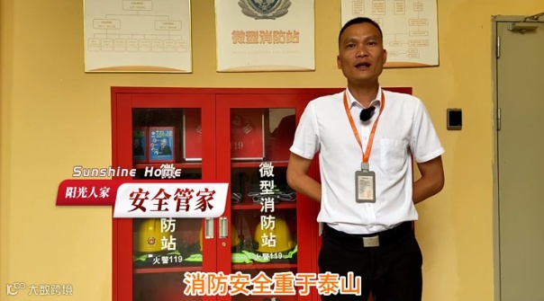 我是安全管家,消防安全重于泰山,我的职责是不放过每一个安全隐患点,让阳光爸妈住的安心。