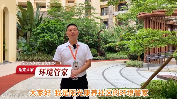 大家好 我是阳光康养社区的环境管家,我的职责是维护好社区的环境卫生,无障碍、无积水、无杂物、保障阳光爸妈在社区生活的每一方空间,都是干干净净的,行走的每一步都能够安安稳稳。