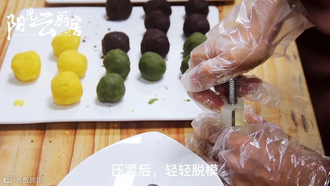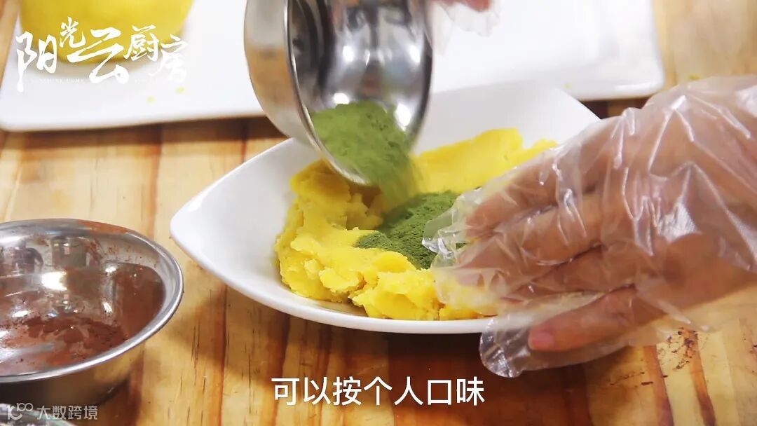 加入抹茶粉或杏仁粉、巧克力粉揉匀