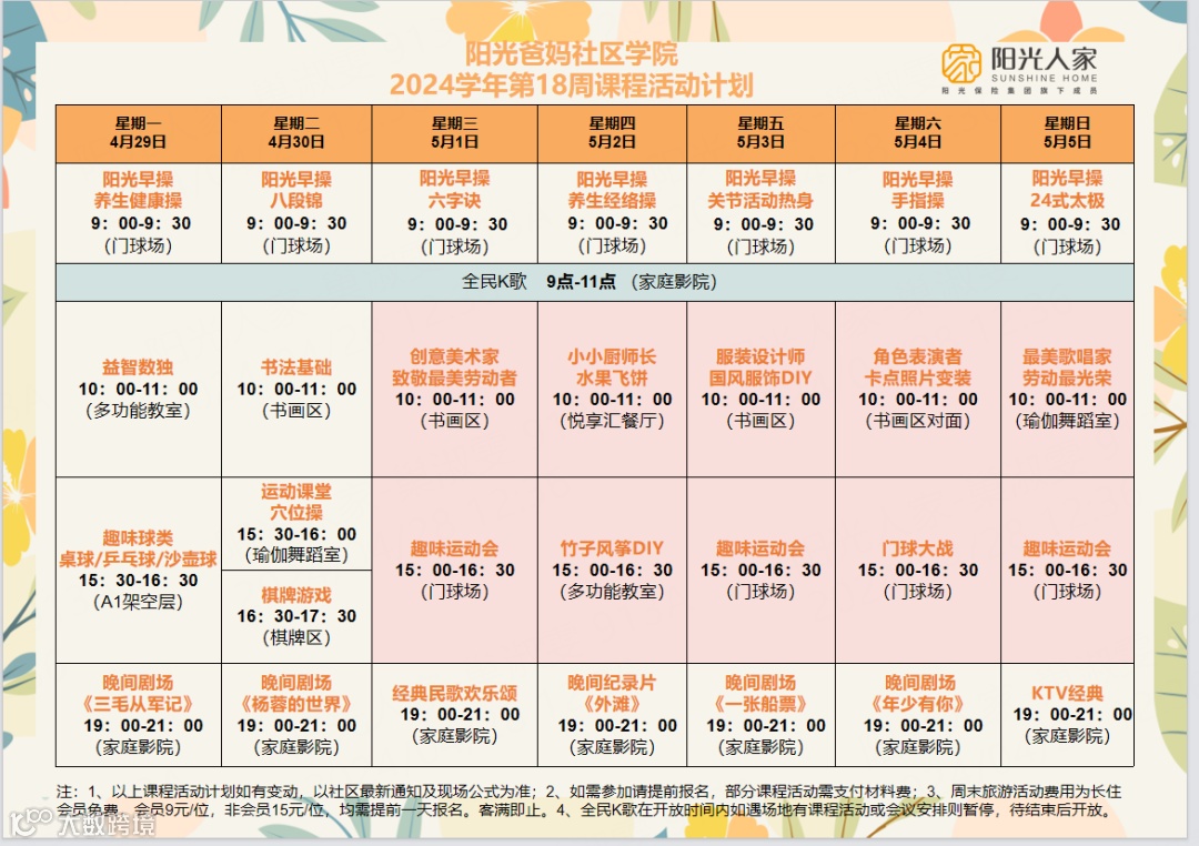 阳光人家社区每个月都会