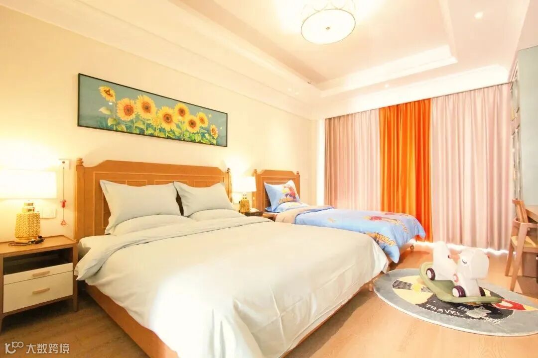 从地板、床品、装饰到家具,都使用了大面积的暖色,给人的感觉非常舒适和温馨。房间都很干净,定期会有阿姨来打扫卫生,换洗床品和衣服。