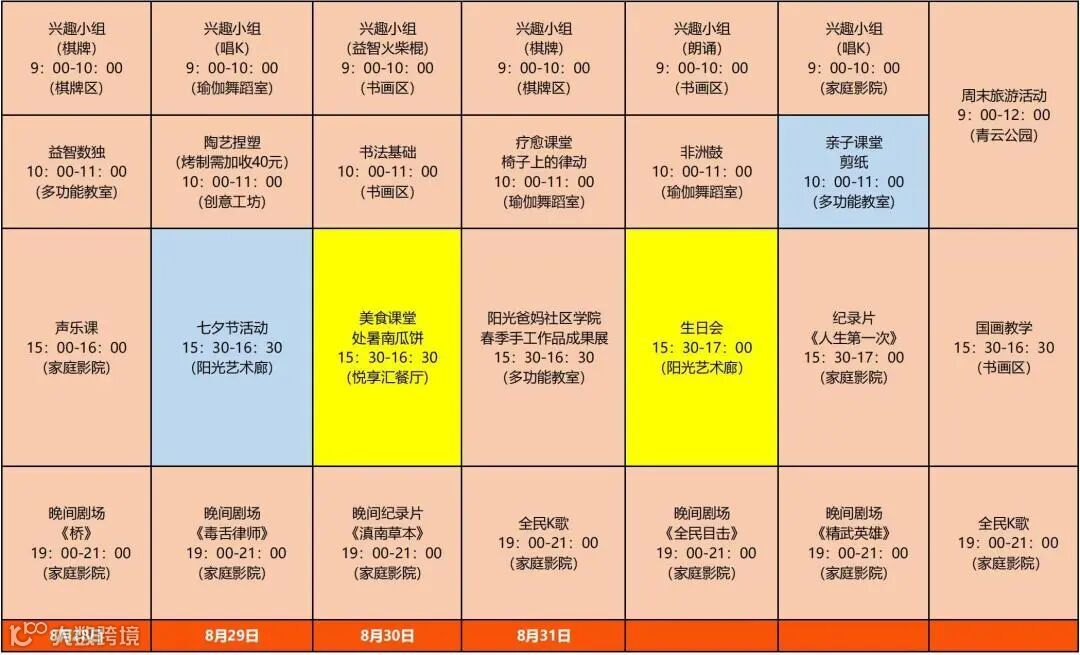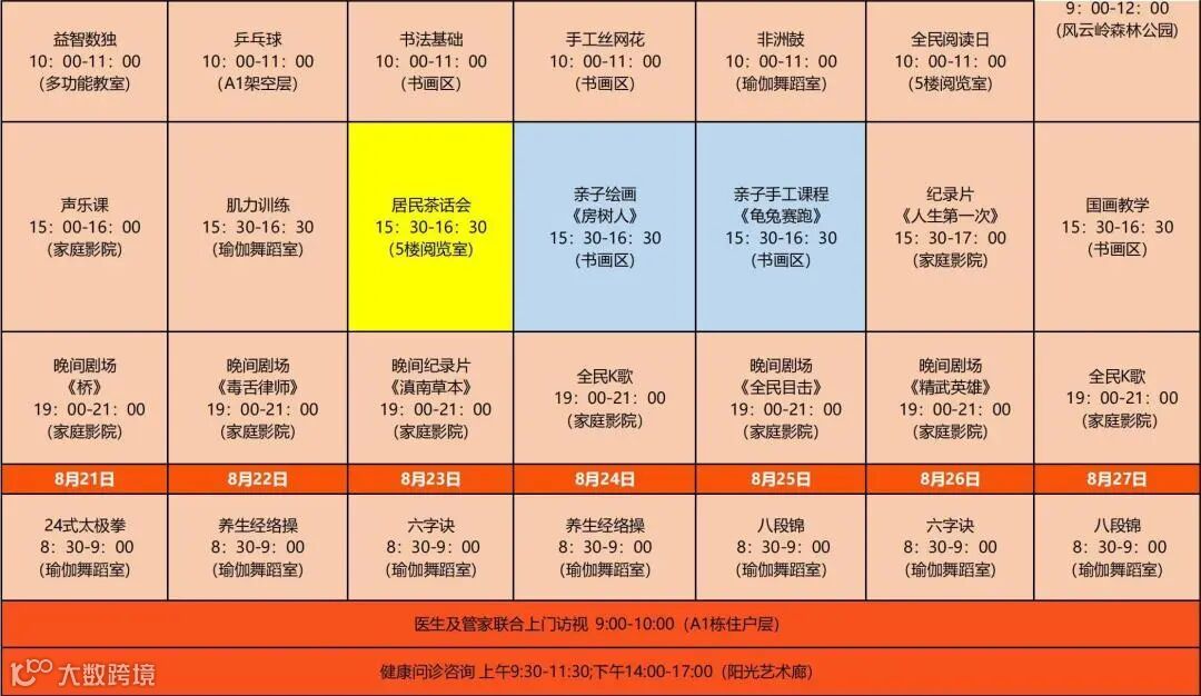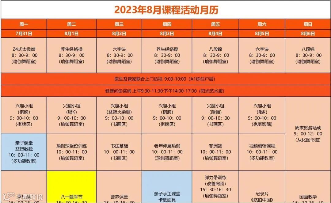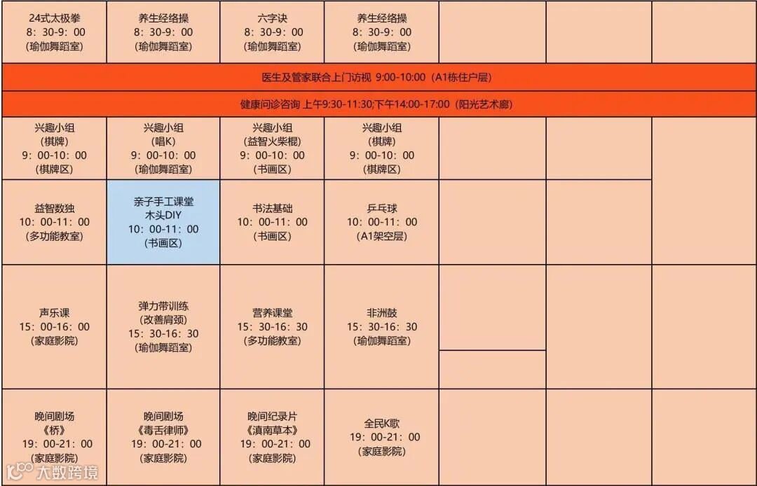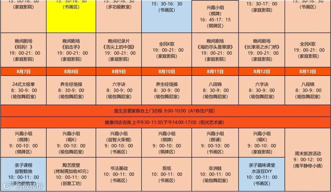 (课表仅供参考,具体以社区每周公示的为准)