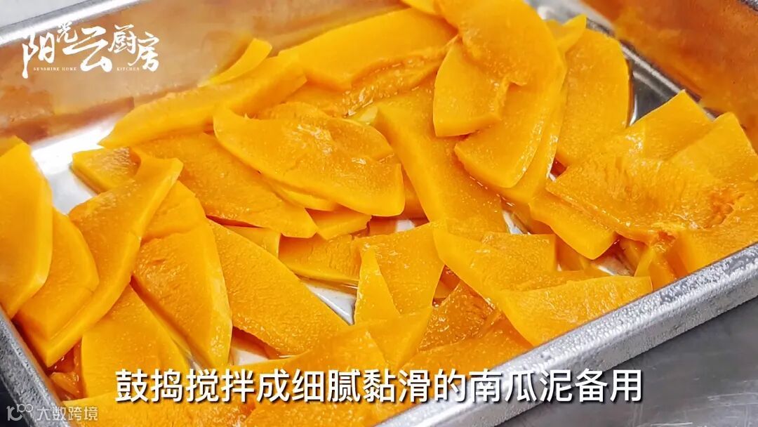 鼓捣搅拌成细腻黏滑的南瓜泥备用