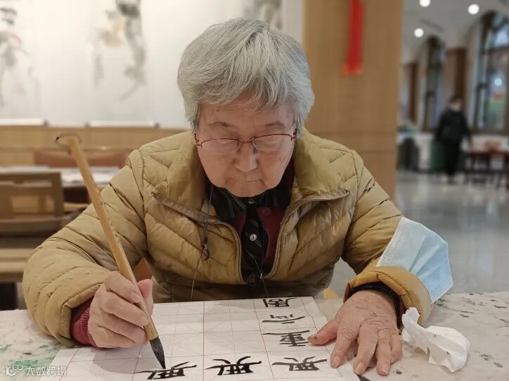 长者参加写书法可以让自己心态平和、⾃然。学习书法时善于观察、勤于思考、用心揣摩,手脑并用,才能真正习得书法的真意。学有所得又增长了知识技能,让长辈们激发重拾年轻时的那份热爱。