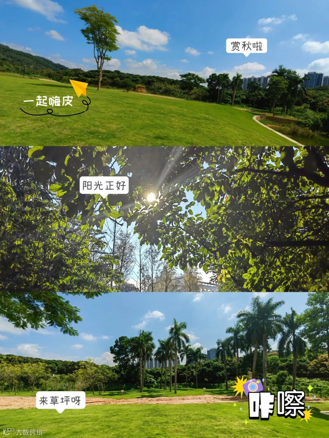 你可以奔跑在草坪间,听风吹树叶的哗哗声;也可以静坐在树下,看蓝天白云与地面交织,仿佛时光都慢了下来。看!就连窗口都能感受到秋的美!
