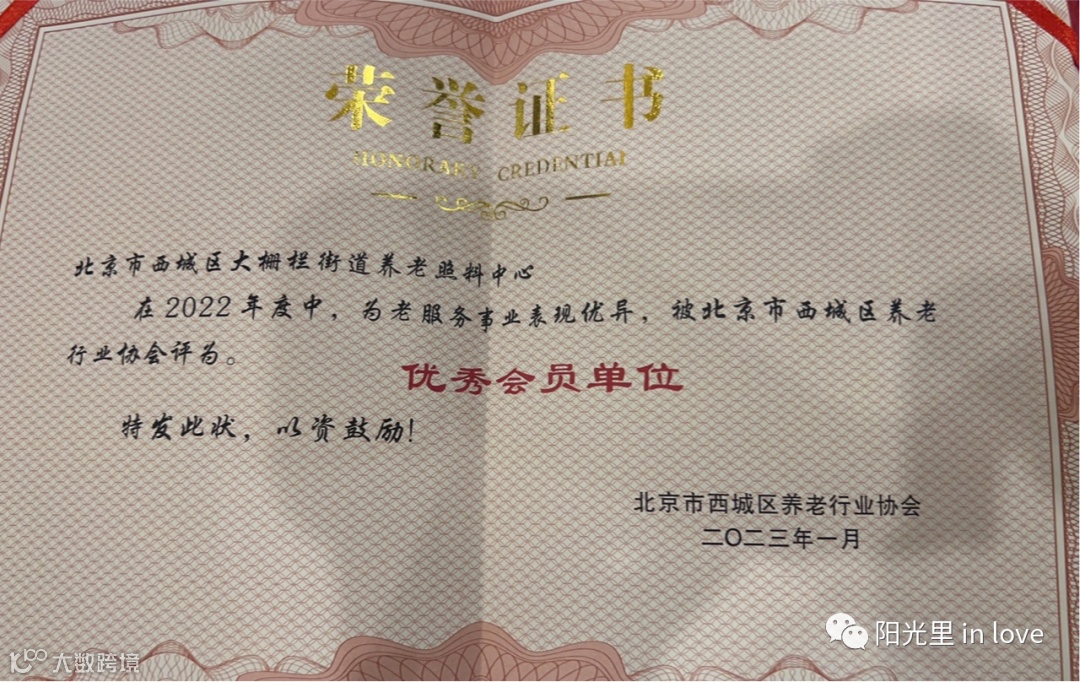 快讯!大栅栏街道养老照料中心被评为北京市西城区养老行业协会优秀会员单位 阳光人家生活荟