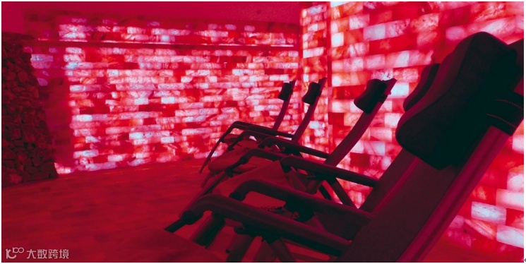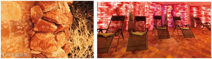 盐疗区墙壁上的盐晶和地板上的盐石,以及浪漫的星空,营造出一种独特的平静氛围。在舒适的盐疗休息室里,还可享受令人愉快放松的音乐。45分钟盐疗体验的成人价格为10欧元。