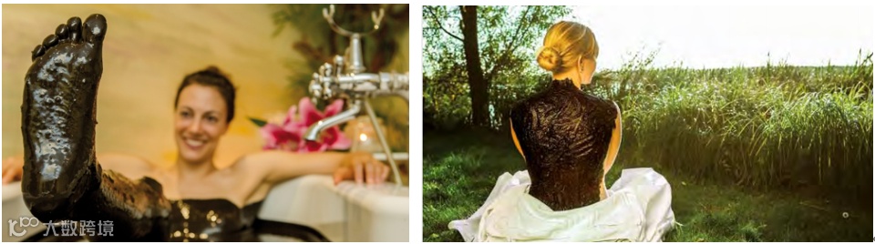 在Saarow Therme温泉疗养中心,天然沼泽泥主要用于泥浴和身体裹敷。全身泥浴15分钟,单人价格49欧元,双人价格69欧元。身体部位裹敷,如关节、颈部、背部等,每个身体部位20分钟/20欧元,此外还提供泥裹敷按摩服务。