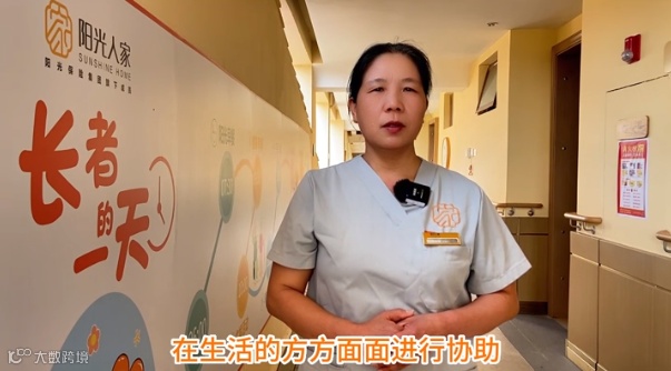 我是照护师,我的职责是帮助需要护理的长者生活得更轻松更开心,从日常洗漱到房间收纳,从用餐到睡眠,从身体到心理,在生活的方方面面进行协助,让入住的长者感受到家人般的温暖。