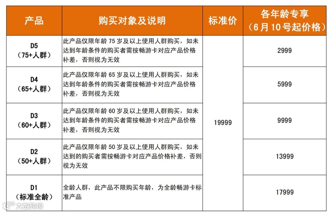 不同年龄段皆有专享价!