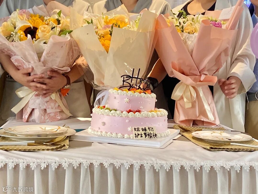 鲜花、蛋糕、气球...暖暖的氛围感瞬间填满了护士站。