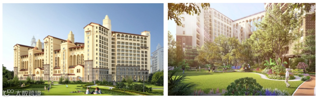 阳光人家占地面积97.8亩,建筑面积15万㎡,容积率是1.79。社区可以分为温泉康养酒店、康养公寓、高级康养公馆、高级养护中心和综合配套服务区五个功能区域,可提供1186个房间,1500张康养床位。