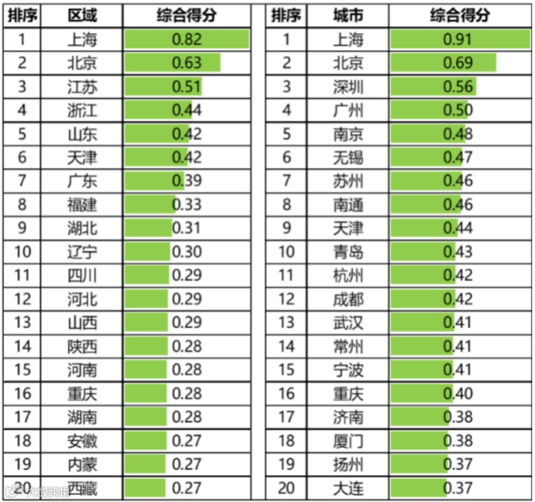 表:中国TOP20养老潜力区域和城市名单
