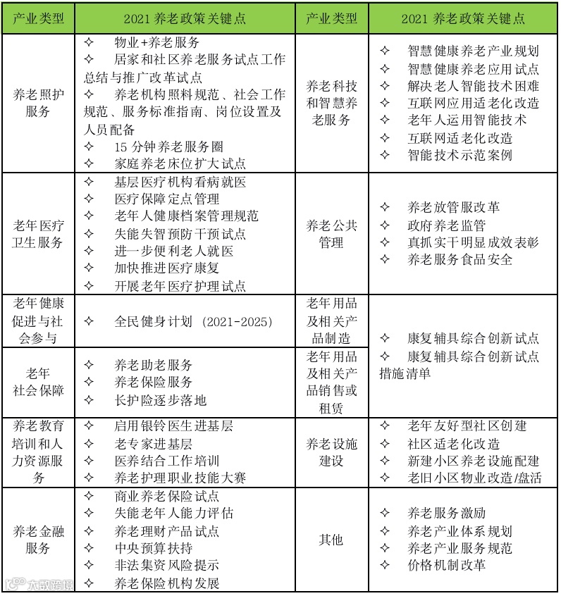 表:2021年养老产业体系下的政策举措