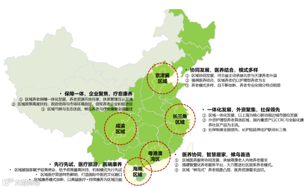图:中国五大康养区域市场格局与特征