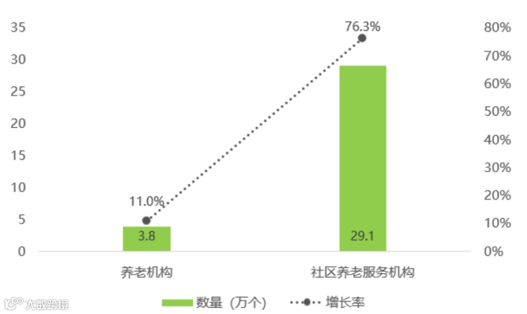 图:2020年机构养老与社区养老数量及增长对比情况