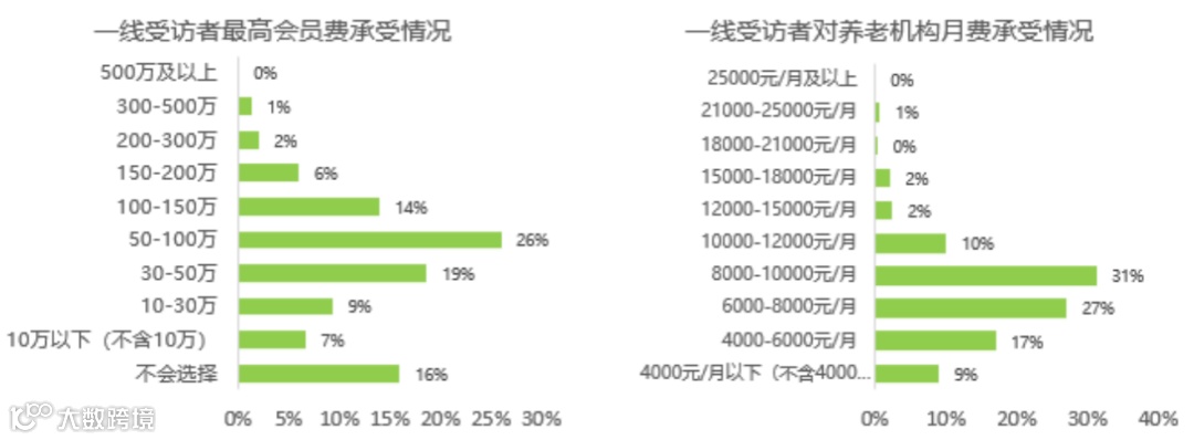图:一线城市中高档老年客户养老消费能力调查数据