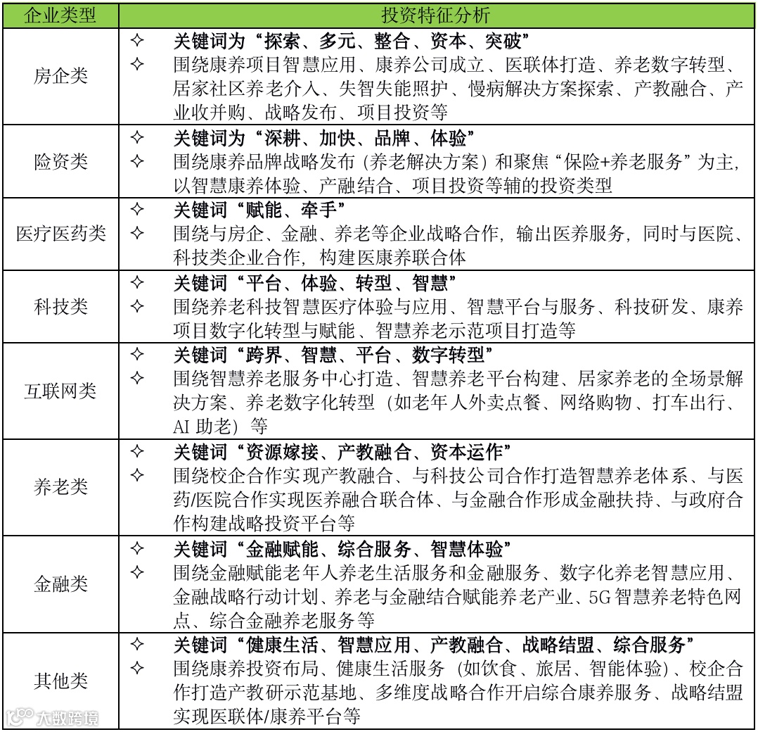 表:2021年各类企业养老战略动向的特征分析